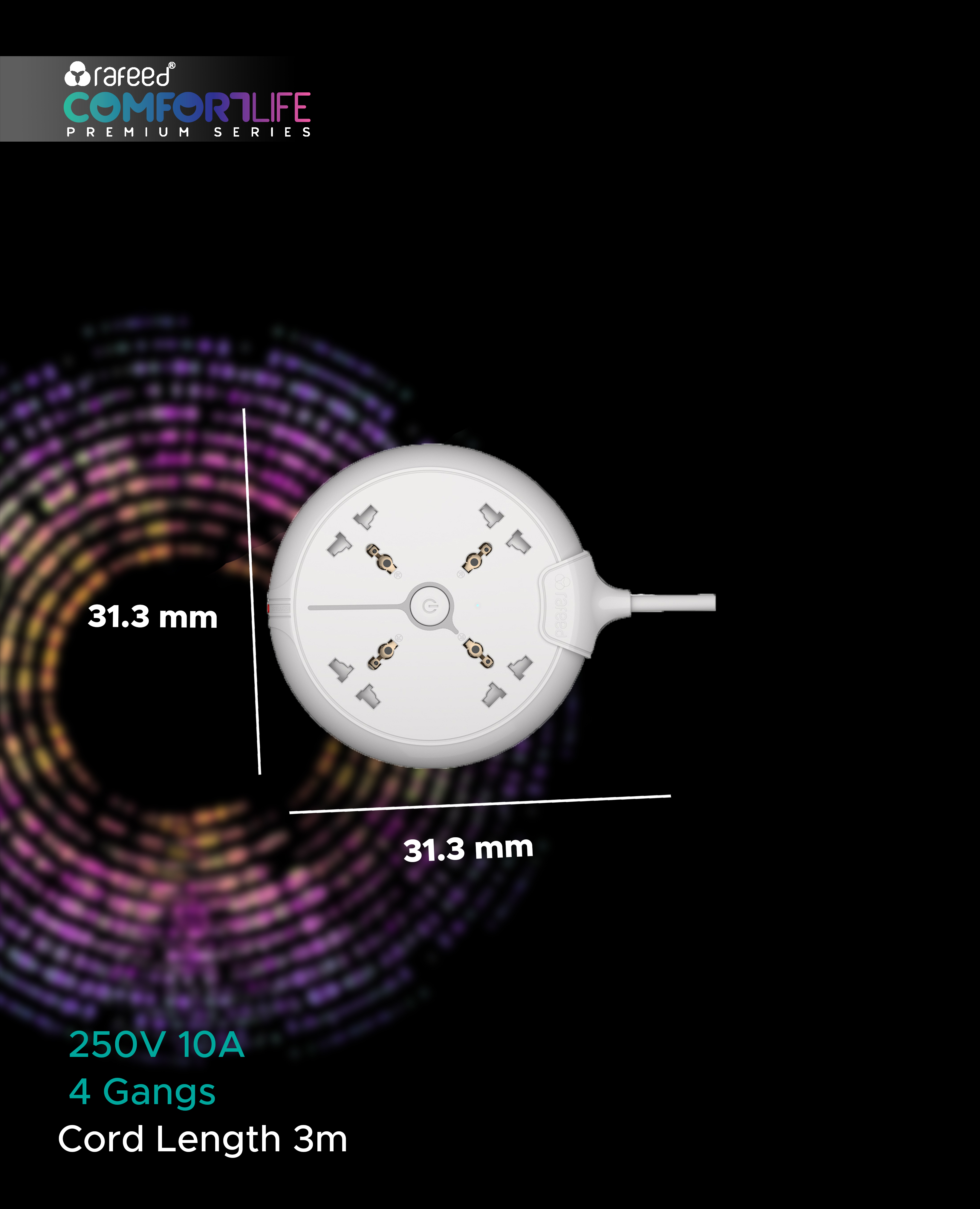 "250V 10A 4 gang Universal type Power Extension Sockets UK Plug Type Cord Length 3m White / PC (Housing) W31.3 mm 4Gangs 3m cord"