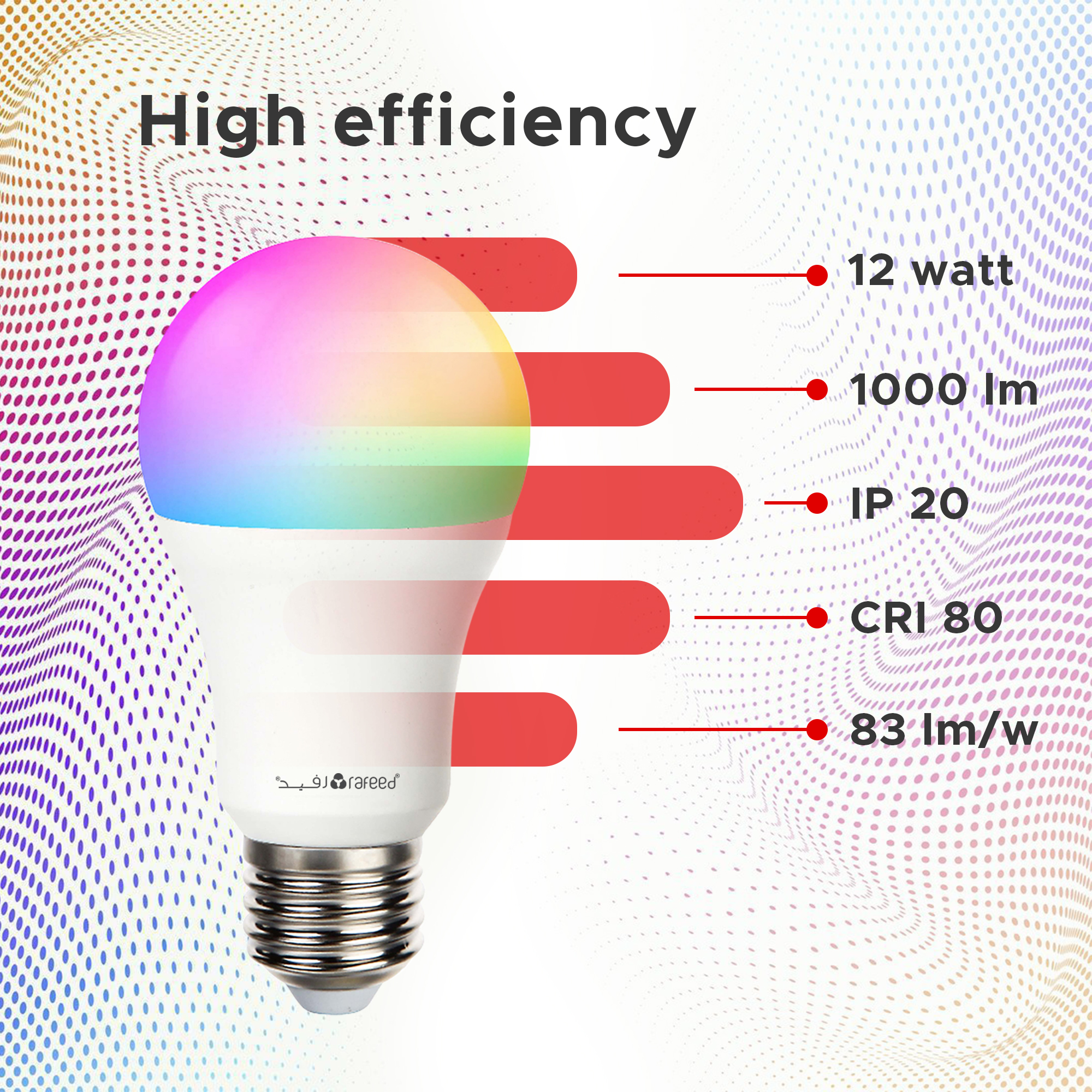 Power 12w , 1000lm , cri 80 , Beam angle 200 RGBCW color change option and color adjustment Smart dimming option Remote control Time scheduling ability Mobile phone controllable compatible with IOS or Android